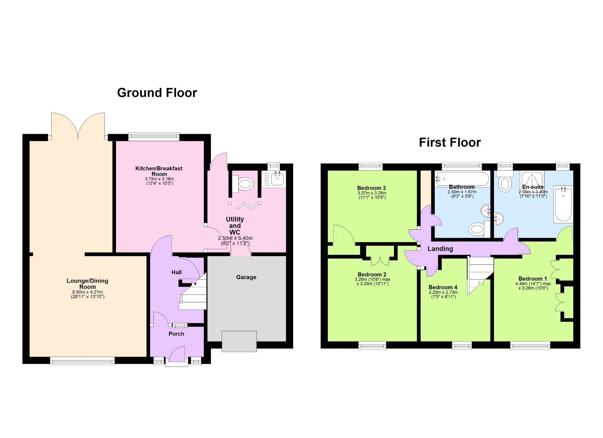 Two further double bedrooms, both with fitted wardrobes, and a good-sized single bedroom are served by the family bathroom.