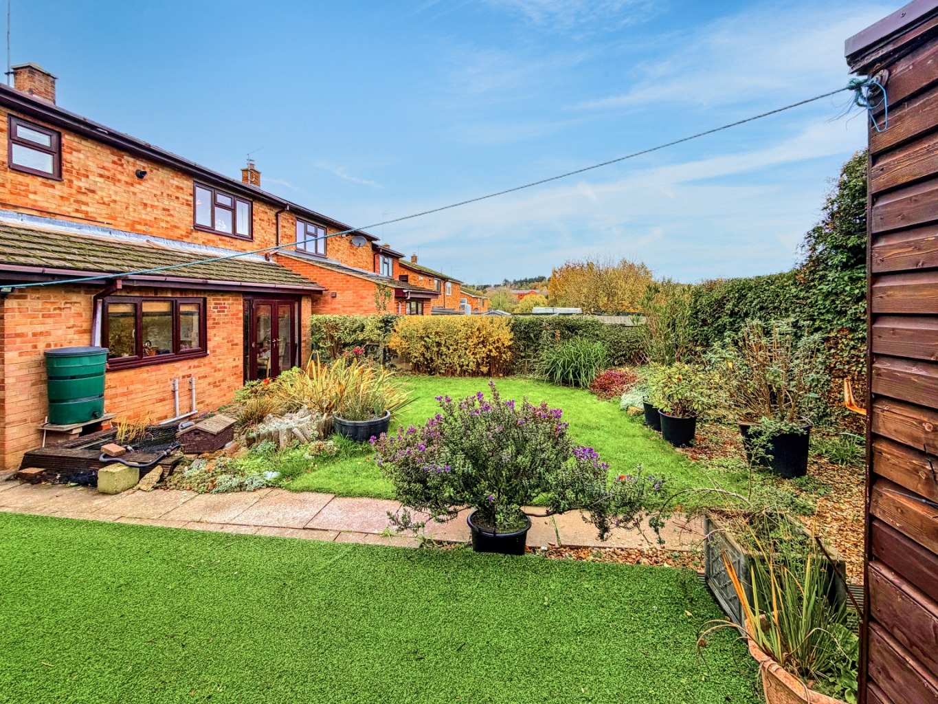 Outside, the sunny rear garden enjoys a lovely outlook over the playing fields and also benefits from a generous side area, giving it a more open feel. At the front, the driveway provides ample parking in addition to the garage.