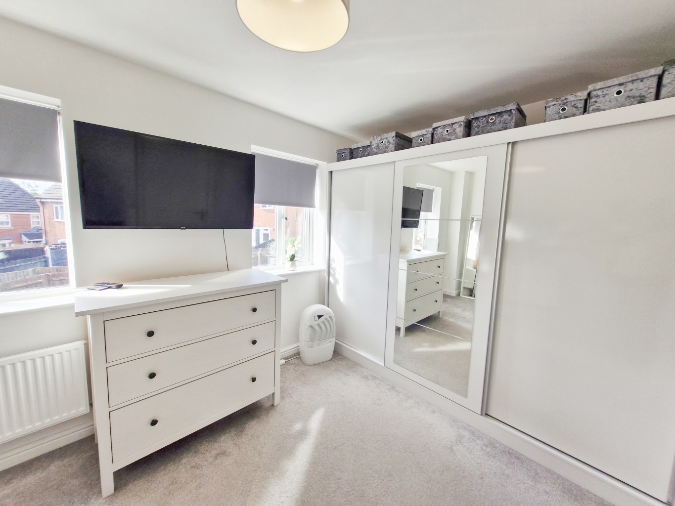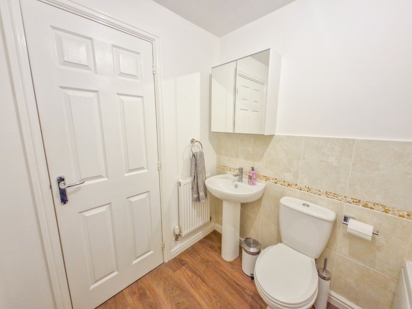 Upstairs you’ll find three good-sized bedrooms, including two doubles and a generous single. The main bedroom has a large fitted mirrored wardrobe which adds to the sense of space and storage. Every room feels light and airy thanks to big windows and neutral finishes.