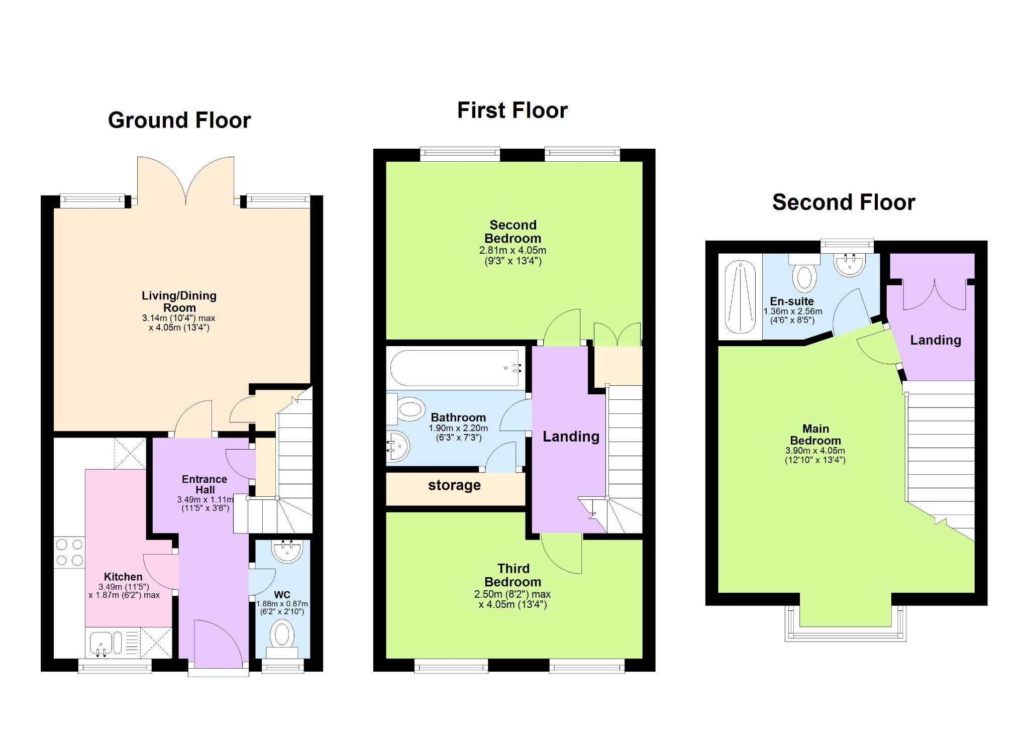 4.13m x 2.63m (13′ 7″ x 8′ 8″)