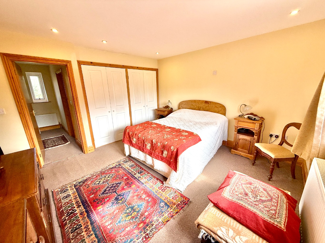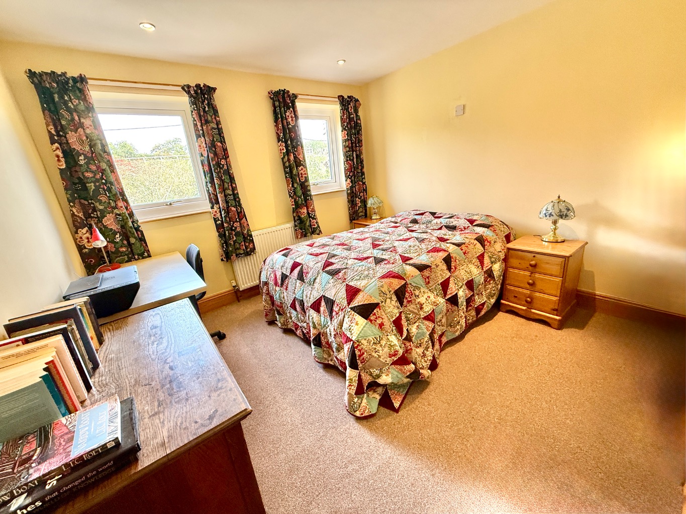 Accommodation is thoughtfully arranged over the property, boasting four, well-proportioned bedrooms. Two of these benefit from their own en-suite facilities and the spacious family bathroom serves the remaining bedrooms, ingeniously designed to also function as an en-suite to bedroom three if required, offering flexible living arrangements. Bedroom four is currently used as a home office. Each bathroom is finished to a high standard, reflecting the overall quality of the renovation.
