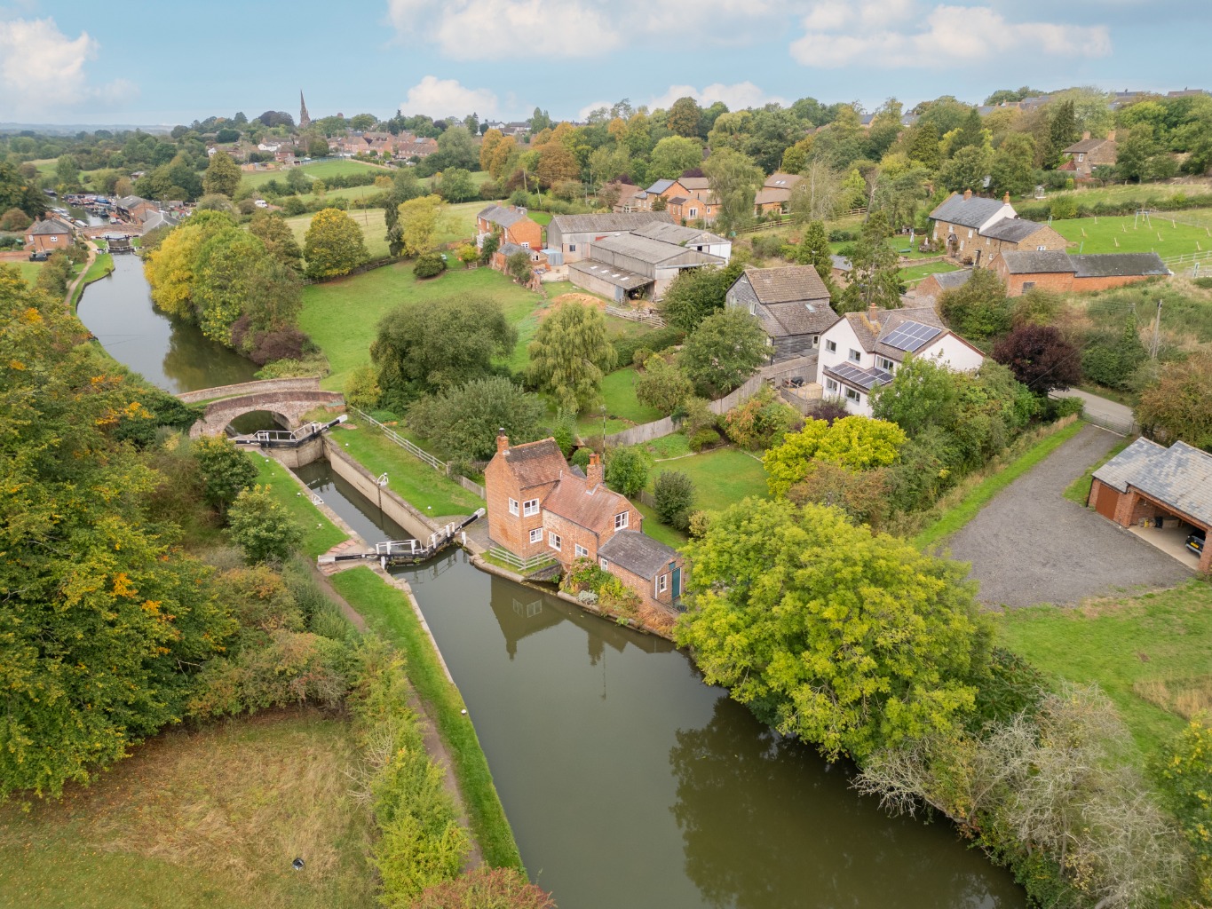 The thoughtful landscaping ensures year-round appeal and offers various vantage points to appreciate the stunning views of the rolling Northamptonshire countryside and the Grand Union Canal.