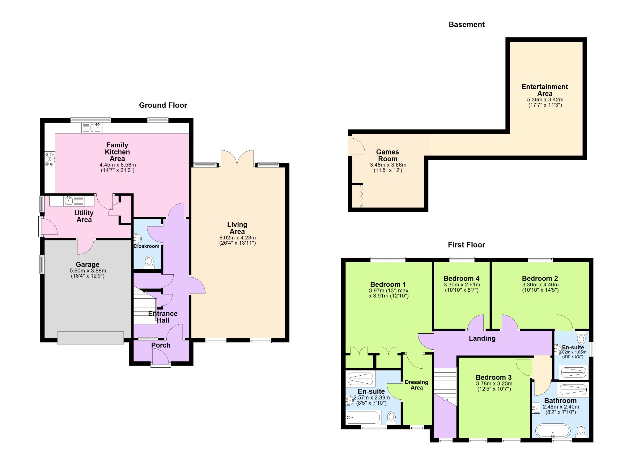 Adding to the versatility of this property is a dedicated entertainment area which is below the main property, complete with a separate access door. This flexible space offers multiple uses, whether as a home cinema, a games room, a private office, or even a self-contained annex for extended family (subject to any necessary consents.) Its independent access enhances its potential.