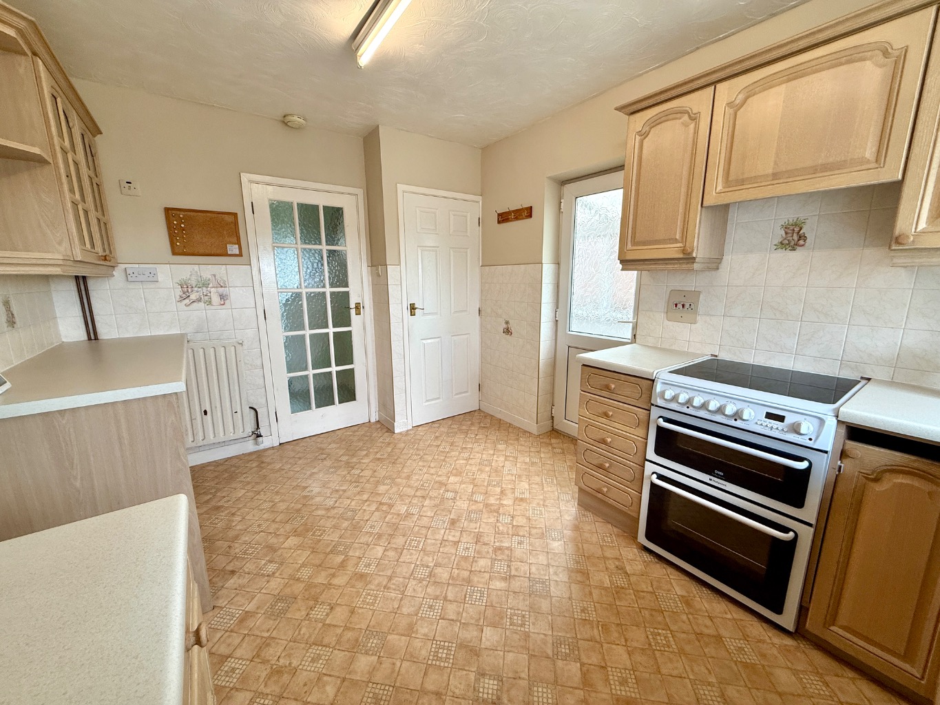 The kitchen area has been well looked after and boasts floor and wall mounted units, there is an electric oven and space and plumbing for white goods, there is also a useful storage cupboard. The kitchen area offers access to a useful side porch with further doors into the rear garden.