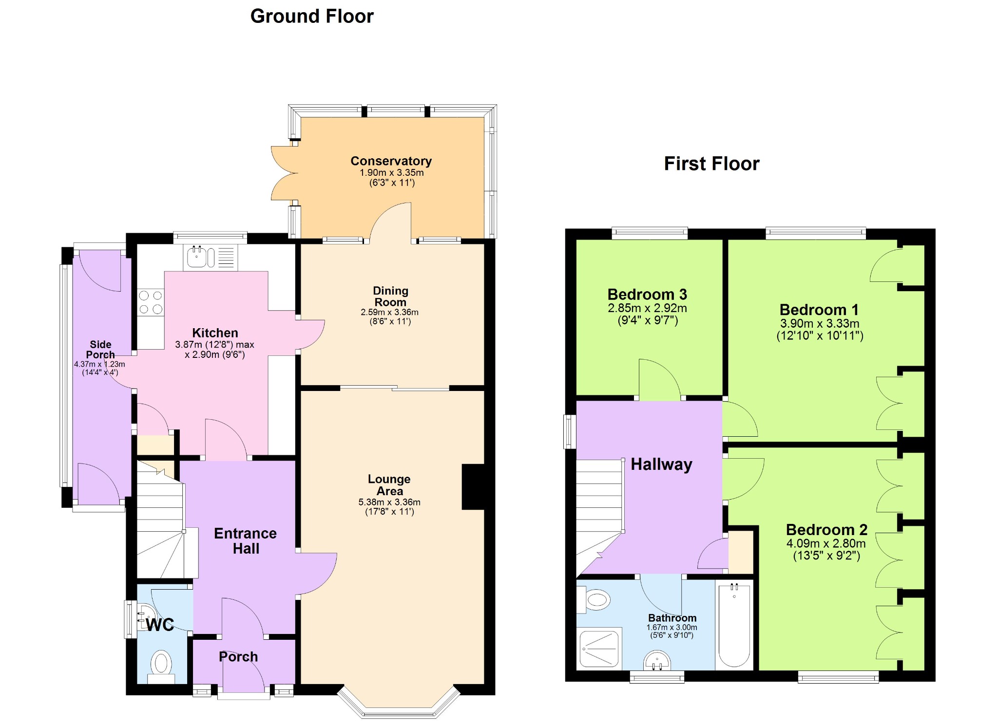 From the dining area UPVC double glazed patio doors then lead into a useful conservatory which overlooks the property’s large rear garden, the conservatory adds useful additional space to the property’s overall ground floor area.
