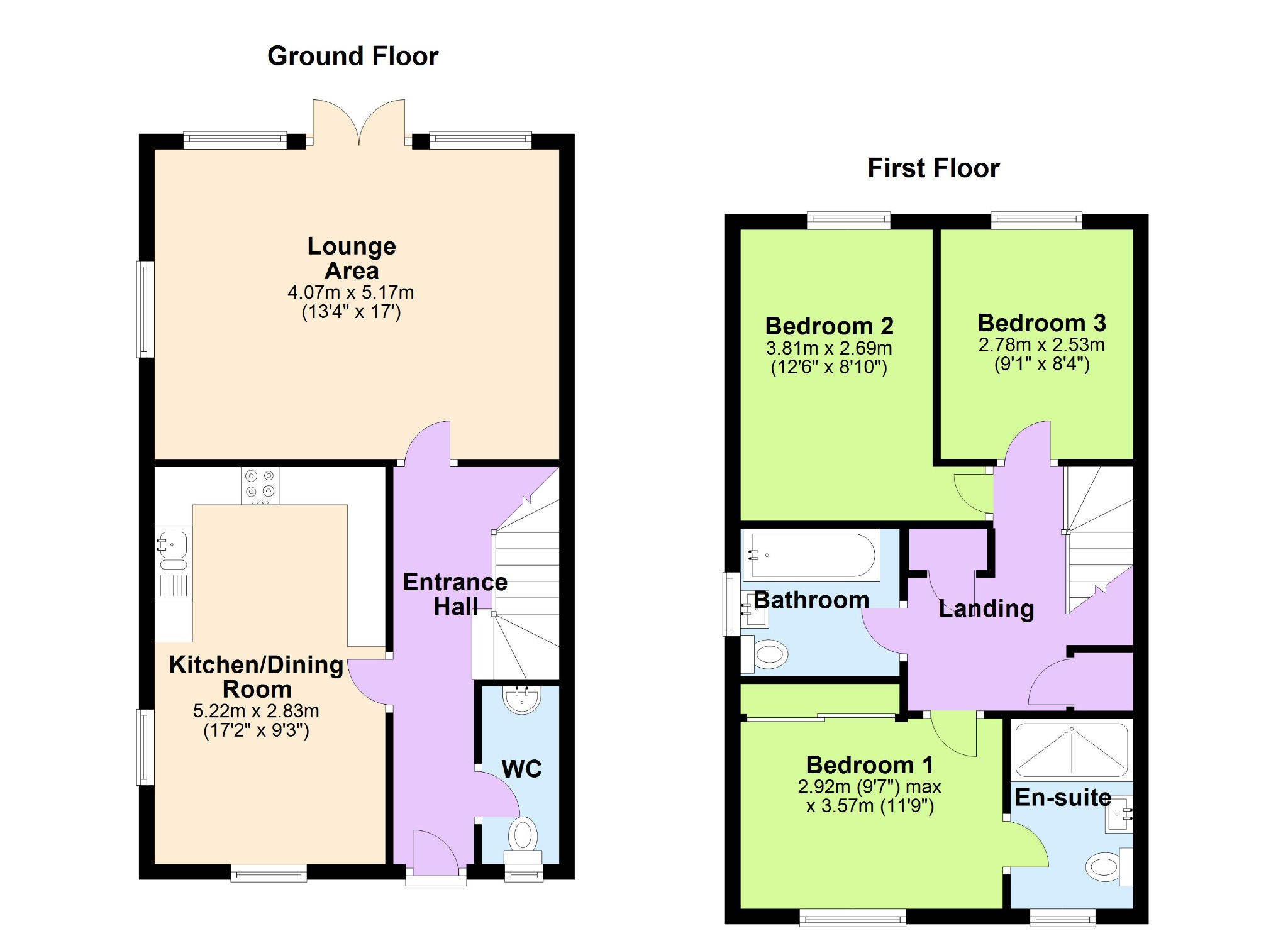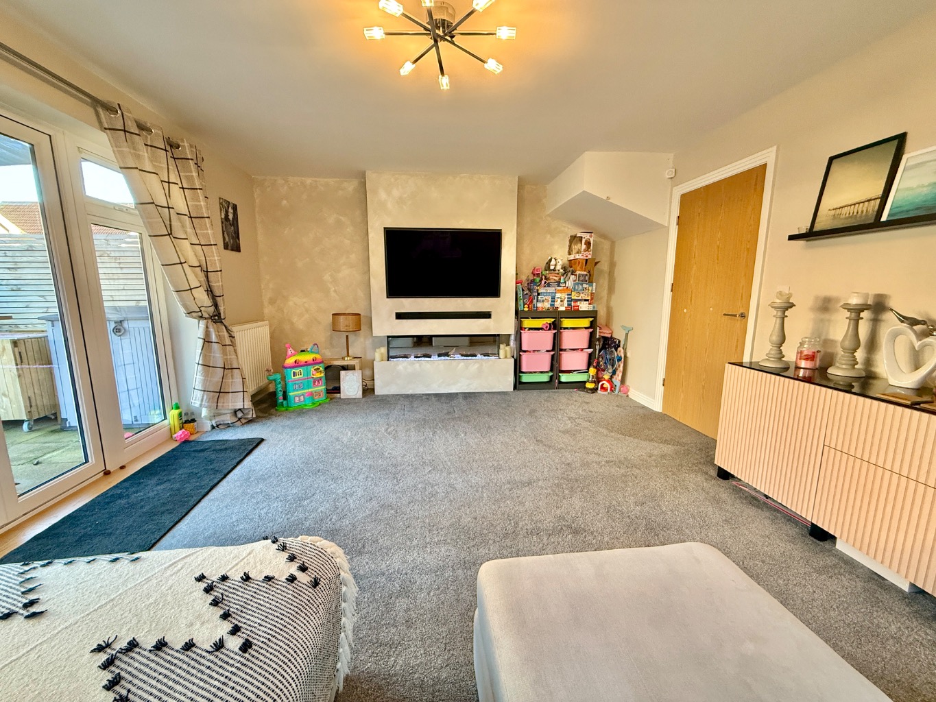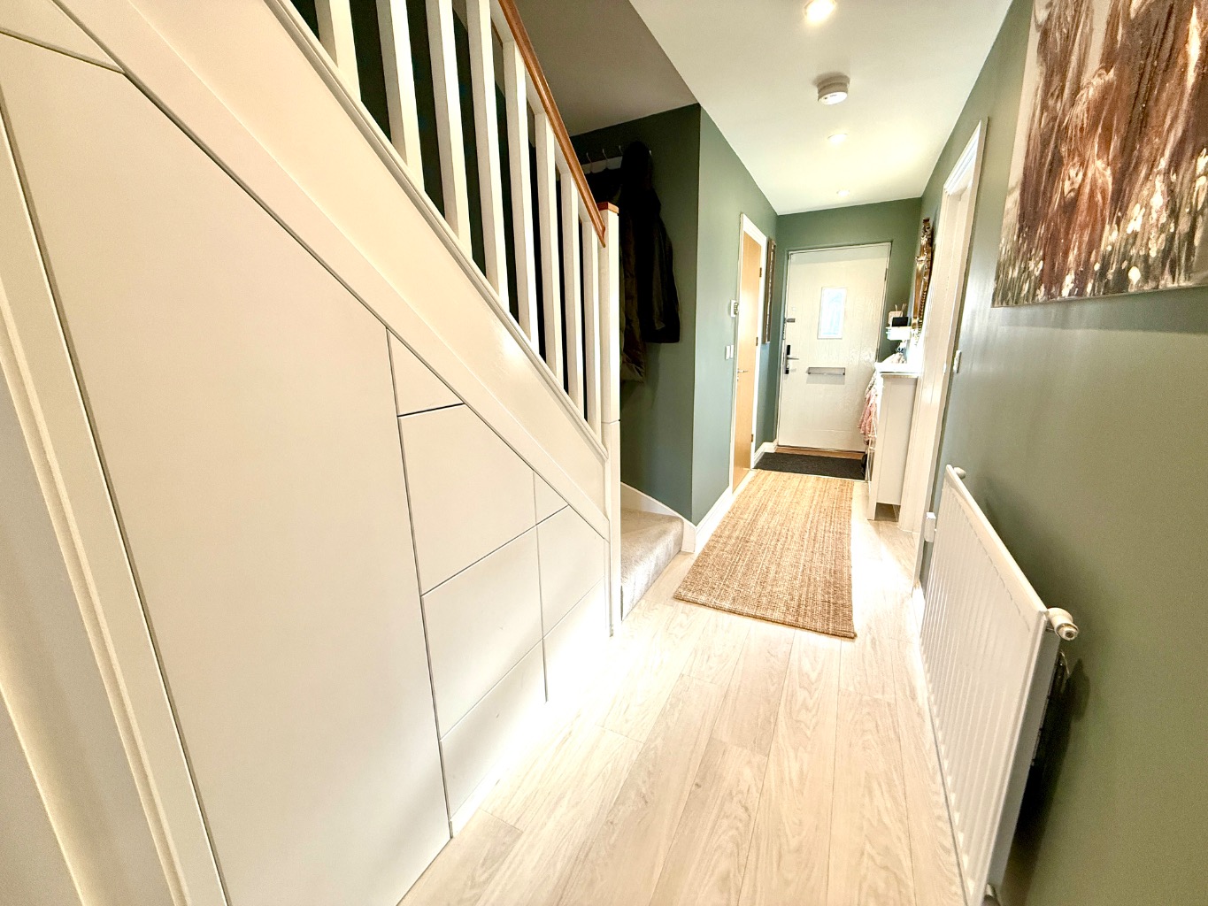 To the first floor, there are two double bedrooms and a good-sized third bedroom, a modern three piece family bathroom.
