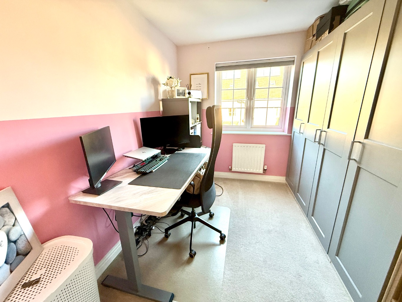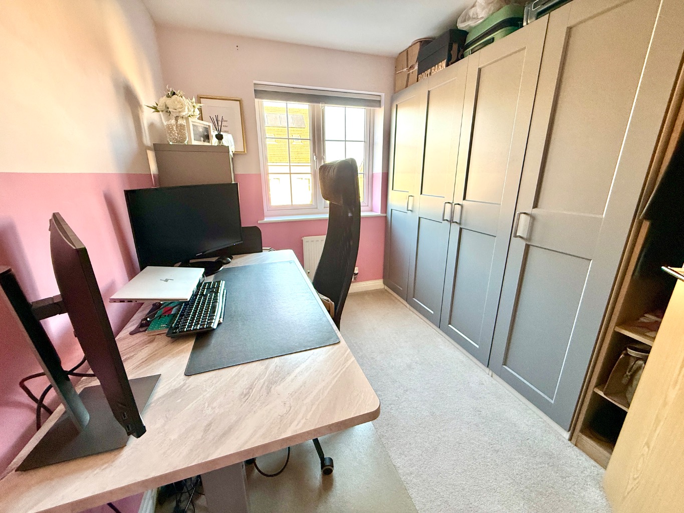 The property is six years old and offers spacious and modern living accommodation. The ground floor comprises of a good sized kitchen, lounge / diner with French doors leading out to the rear garden, a large storage cupboard, and a very useful downstairs WC.