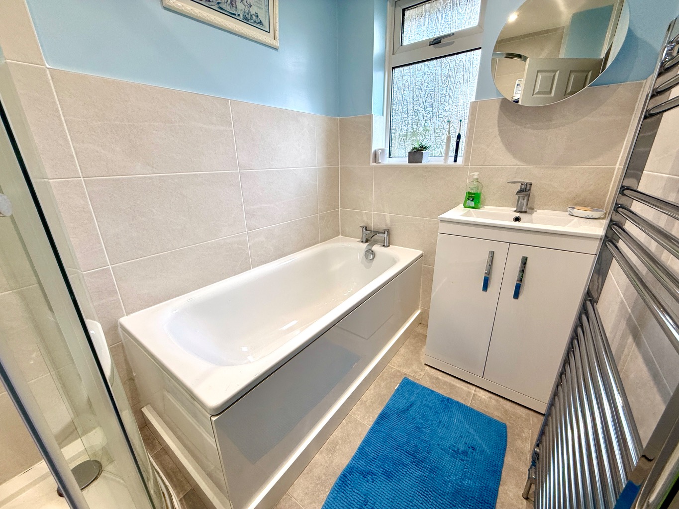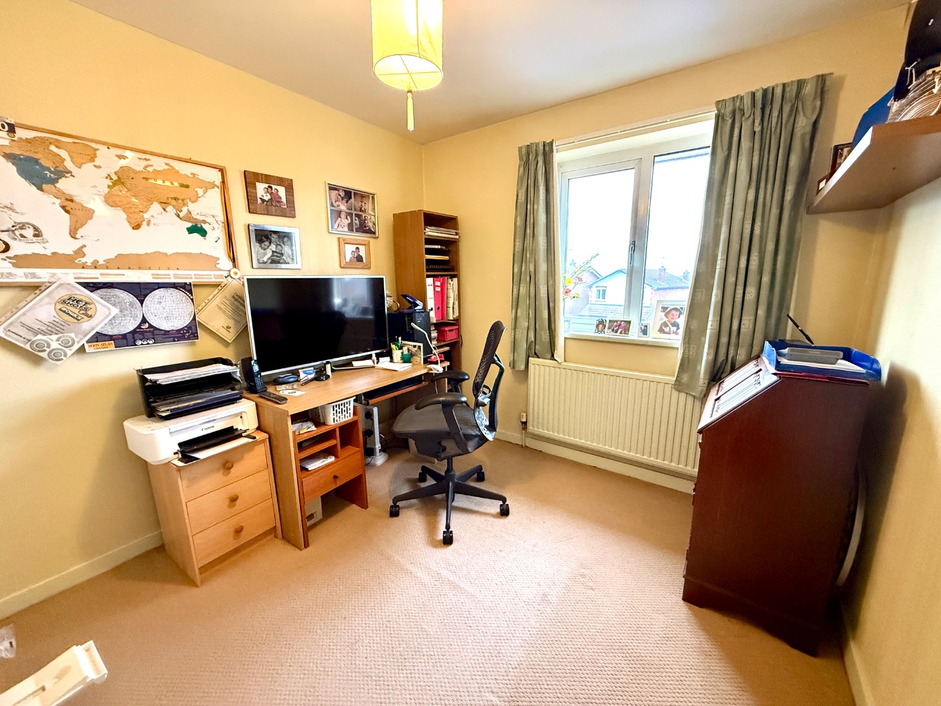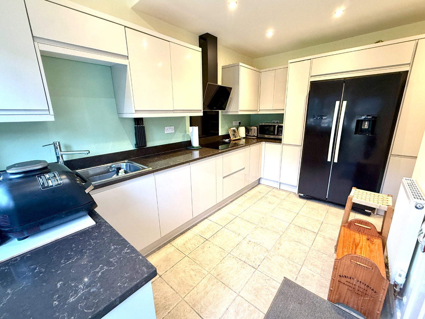 Accommodation is thoughtfully arranged over the property, boasting four, well-proportioned bedrooms. Two of these benefit from their own en-suite facilities and the spacious family bathroom serves the remaining bedrooms, ingeniously designed to also function as an en-suite to bedroom three if required, offering flexible living arrangements. Bedroom four is currently used as a home office. Each bathroom is finished to a high standard, reflecting the overall quality of the renovation.