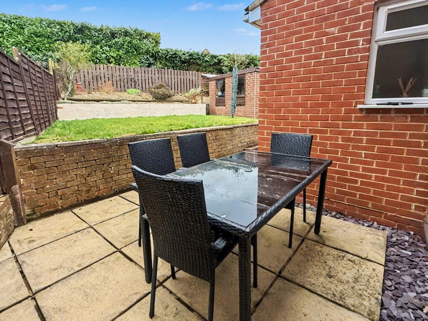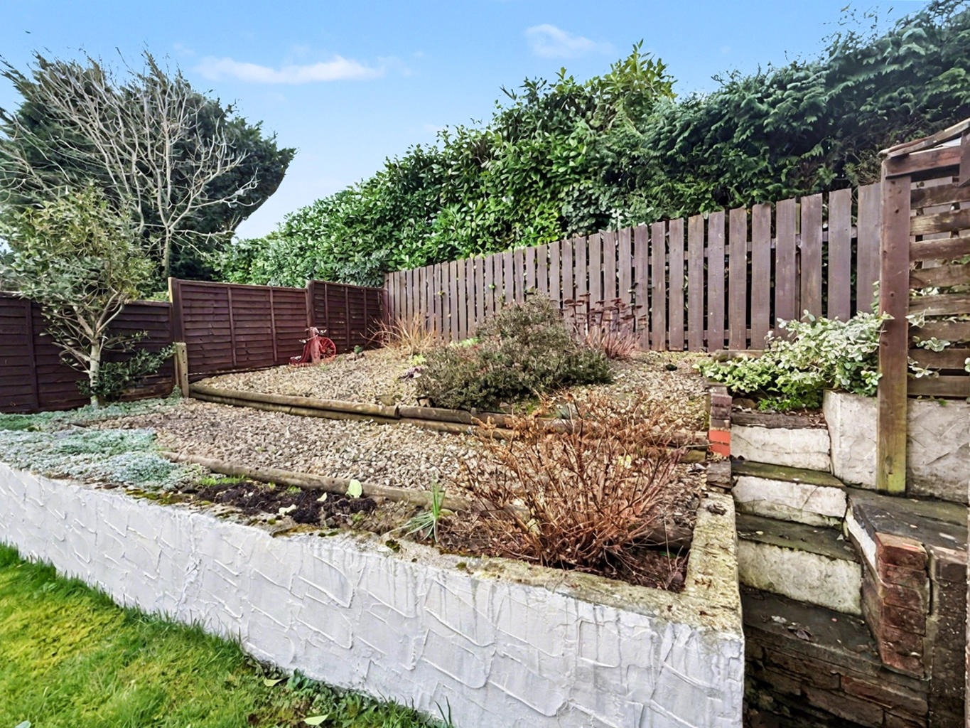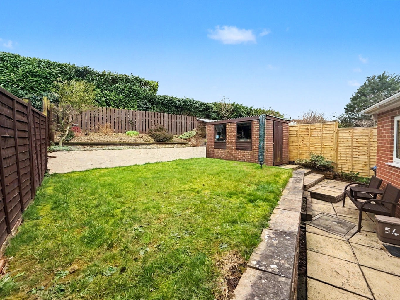 At the rear the tiered, mature, and beautifully landscaped rear garden provides a quiet and peaceful outdoor sanctuary, perfect for relaxation, gardening, or children’s play.