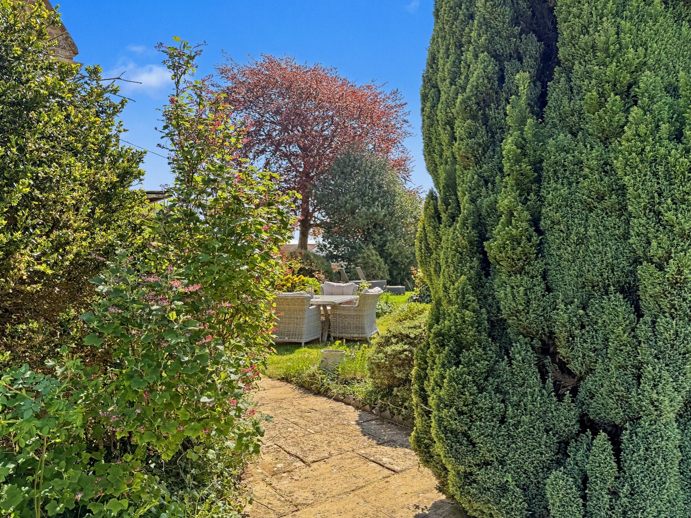 And importantly — it’s private and backs onto the allotments, which gives you a much more open and peaceful outlook than you’d normally expect. It’s the kind of setting that feels calm, green and settled, without being too rural or isolated.