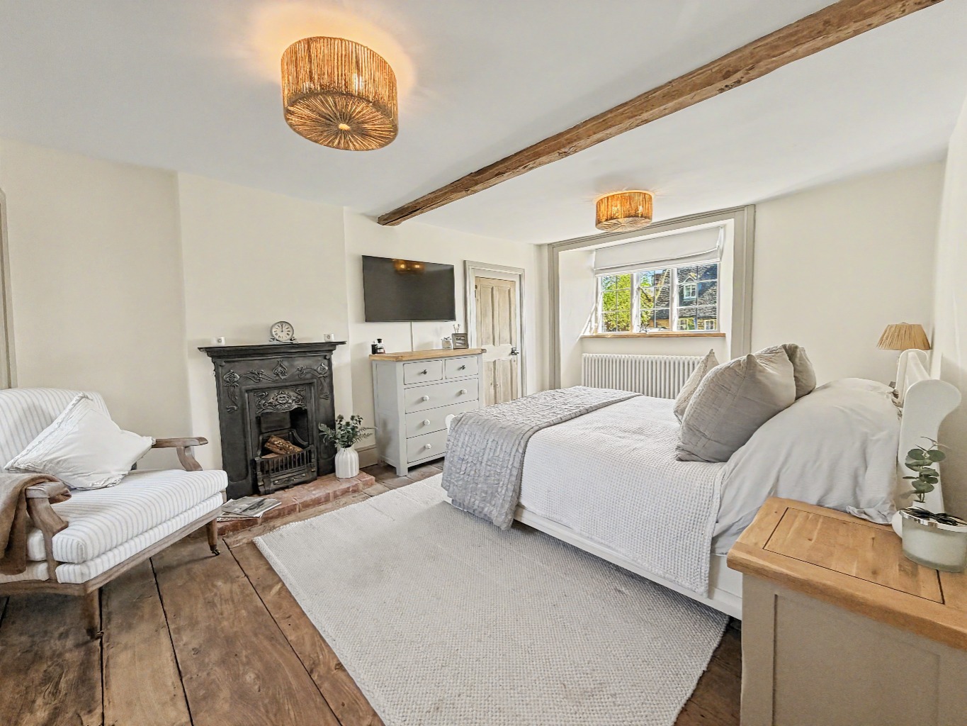 Upstairs, the main bedroom is a real highlight. It comfortably fits a super-king bed, and it also benefits from a dedicated dressing area and a generous en-suite, giving it that “main suite” feel that buyers love.