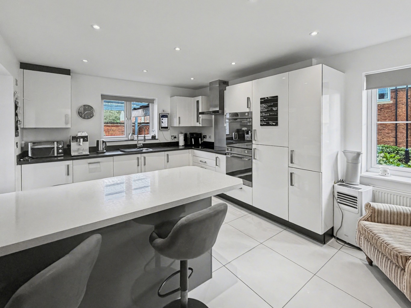 The ground floor also offers a dual-aspect lounge, full of natural light, along with a second reception room currently used as a cosy den. This flexible space could just as easily work as a dining room, playroom, music room or even a snug… the choice is yours.