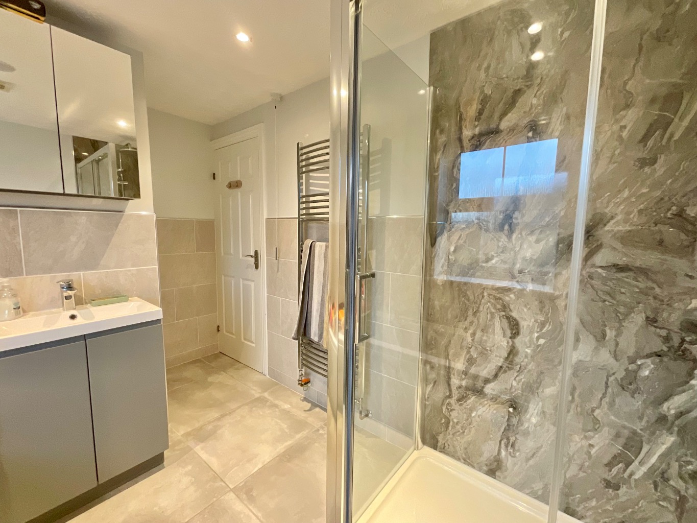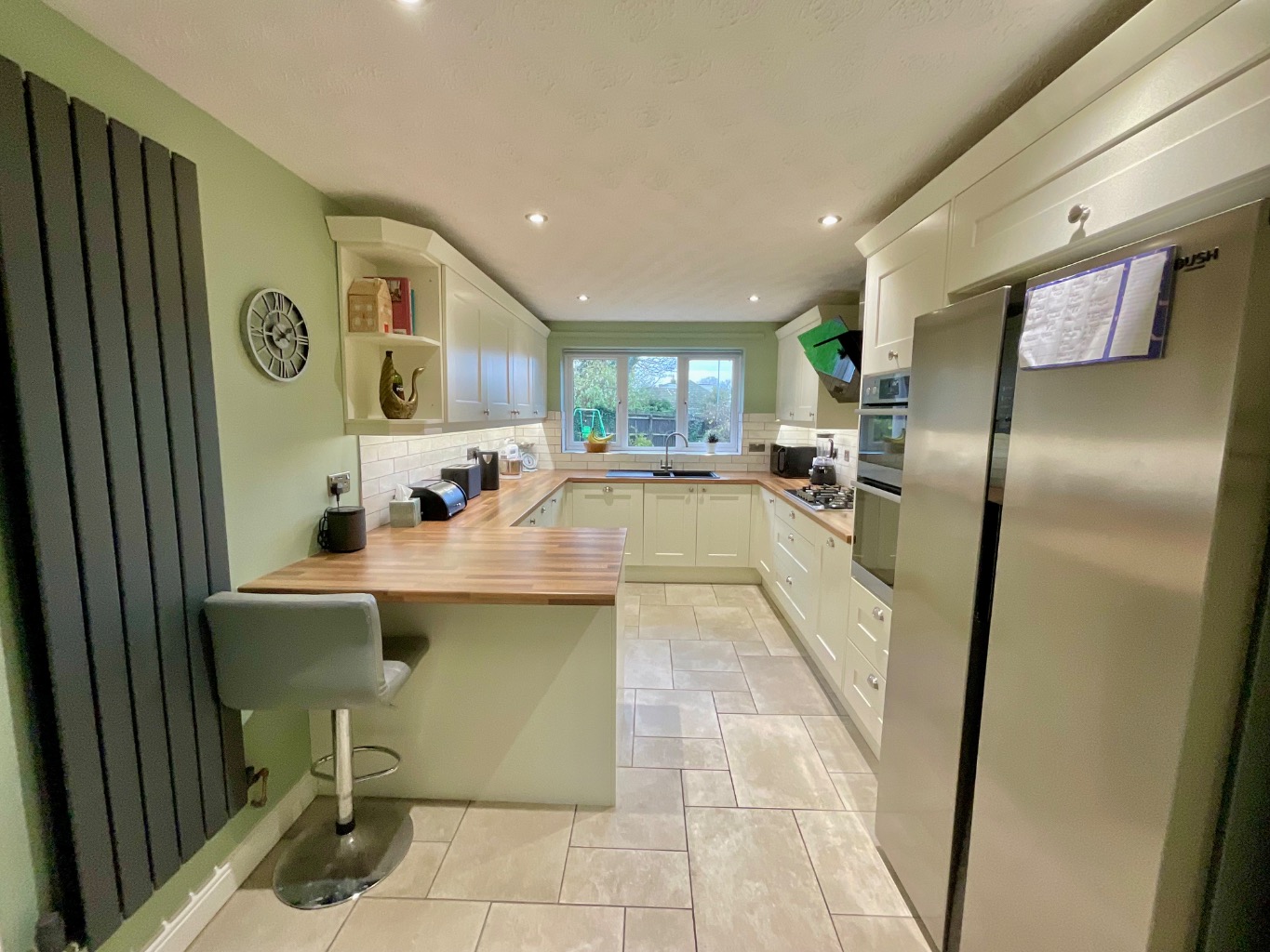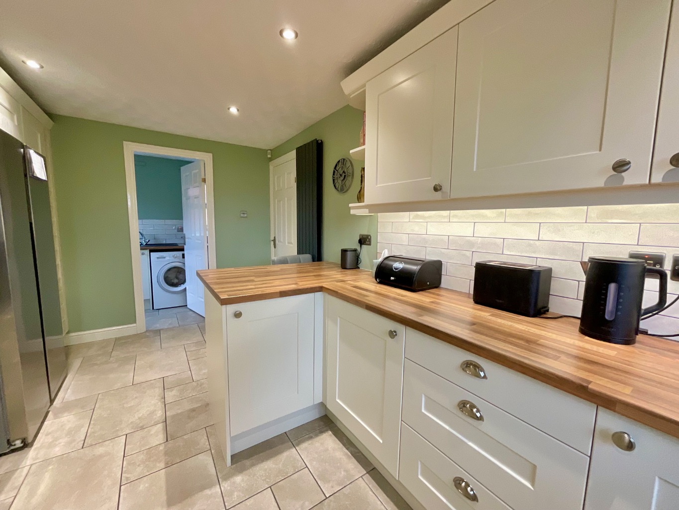 The modern refitted kitchen offers plenty of worksurface and storage, space for a fridge/freezer and plumbing and space for a washing machine and dishwasher, there is also a small but convenient breakfast bar, the kitchen also offers access into a single garage.