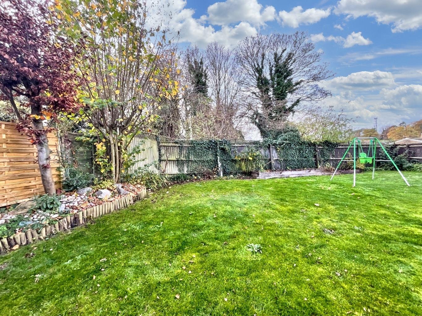 To the rear of the property the tiered rear garden is totally private, there is a paved patio area and steps up to two separate lawn areas which are fairly low maintenance. The patio area is a pleasant private place to have a BBQ or sit and enjoy the evening sunshine.
