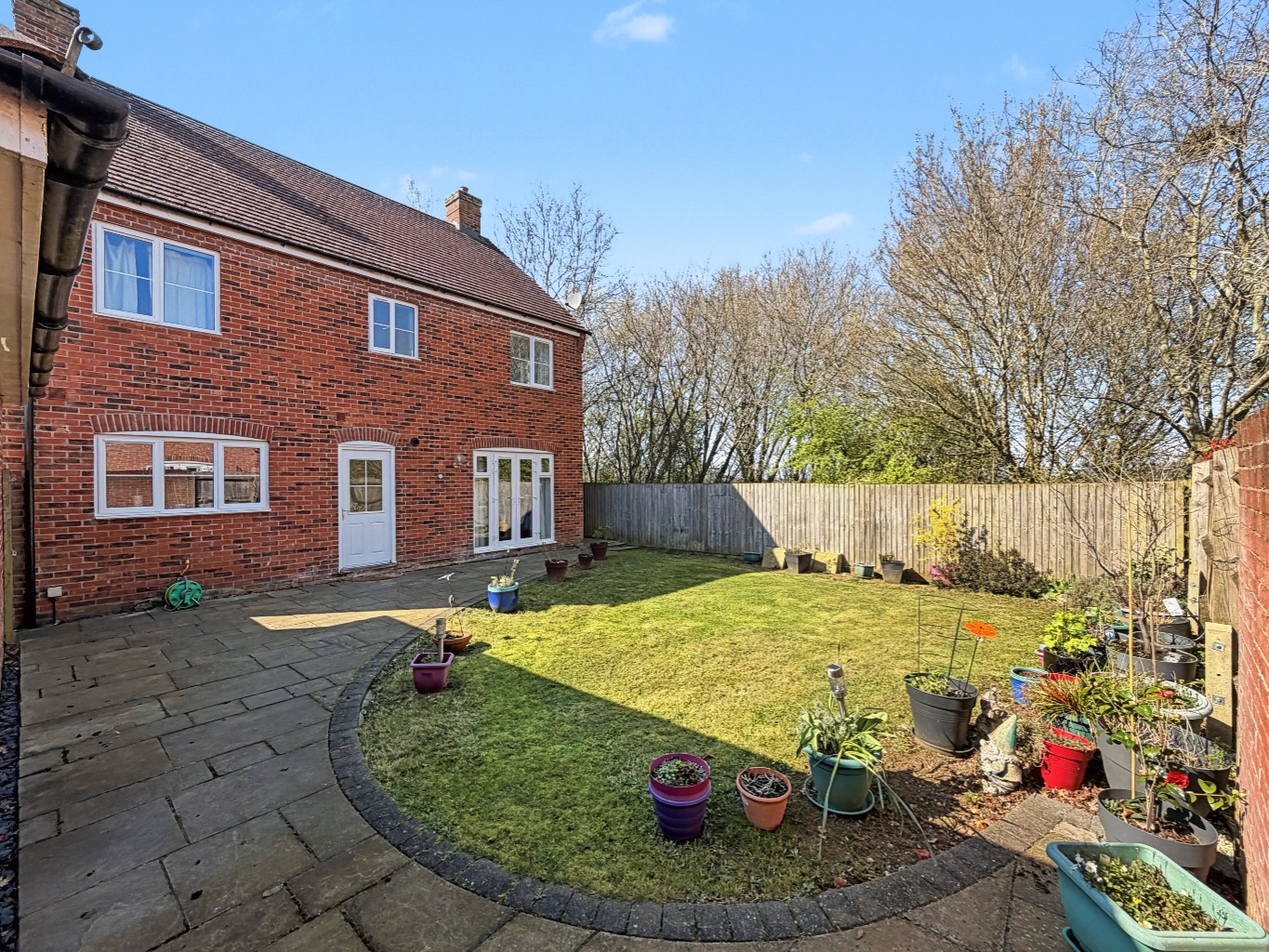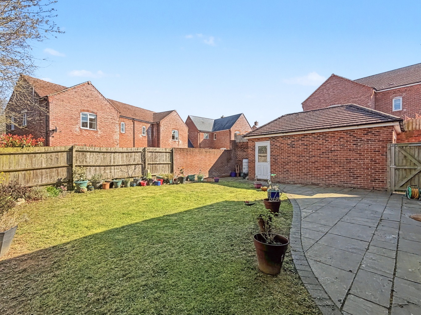 The rear garden is a good size and a great place for relaxing or having friends over, and offers a peaceful space to enjoy the outdoors, there is a patio area, gated access to the side, and a personal door to the detached garage.