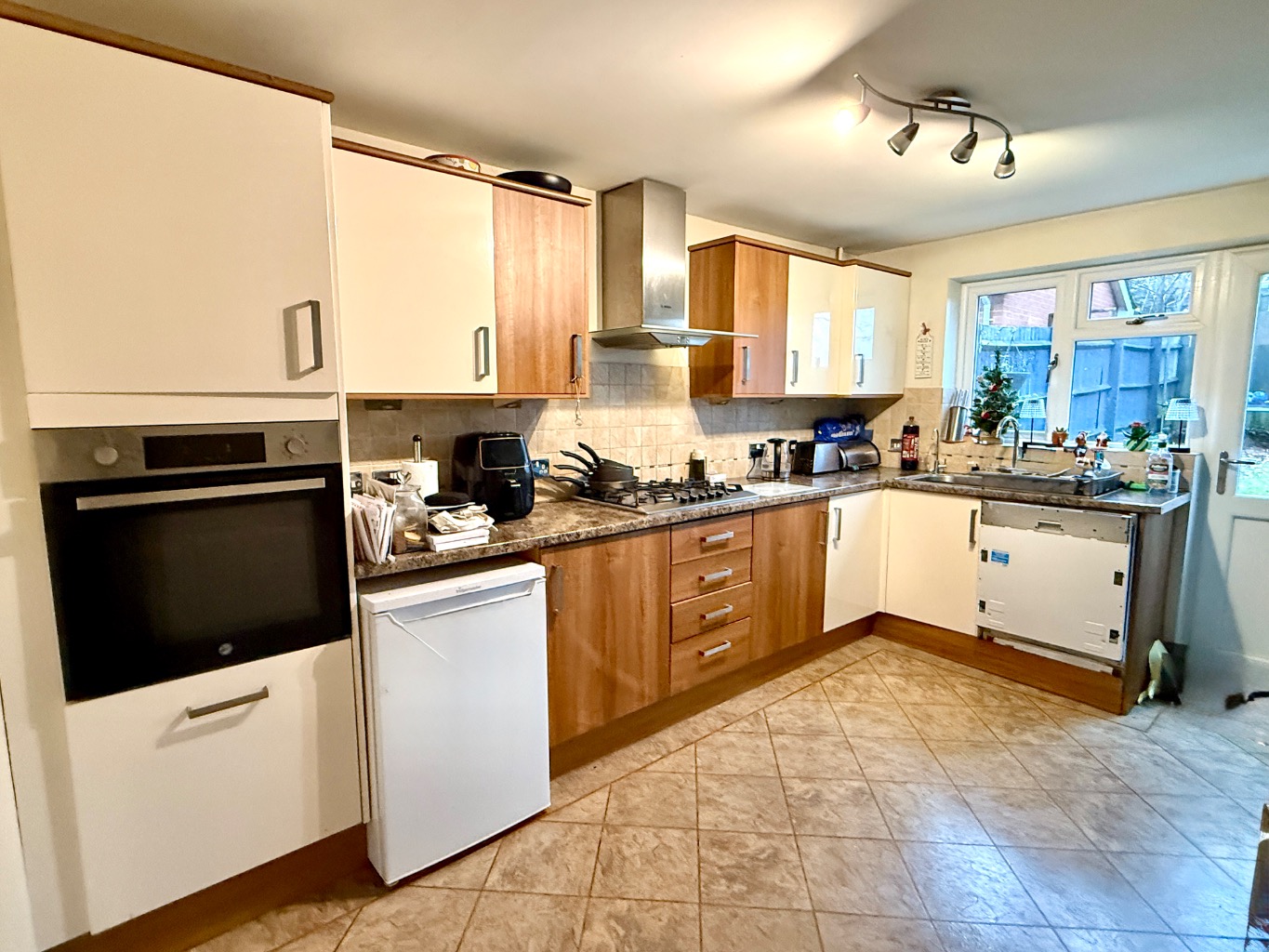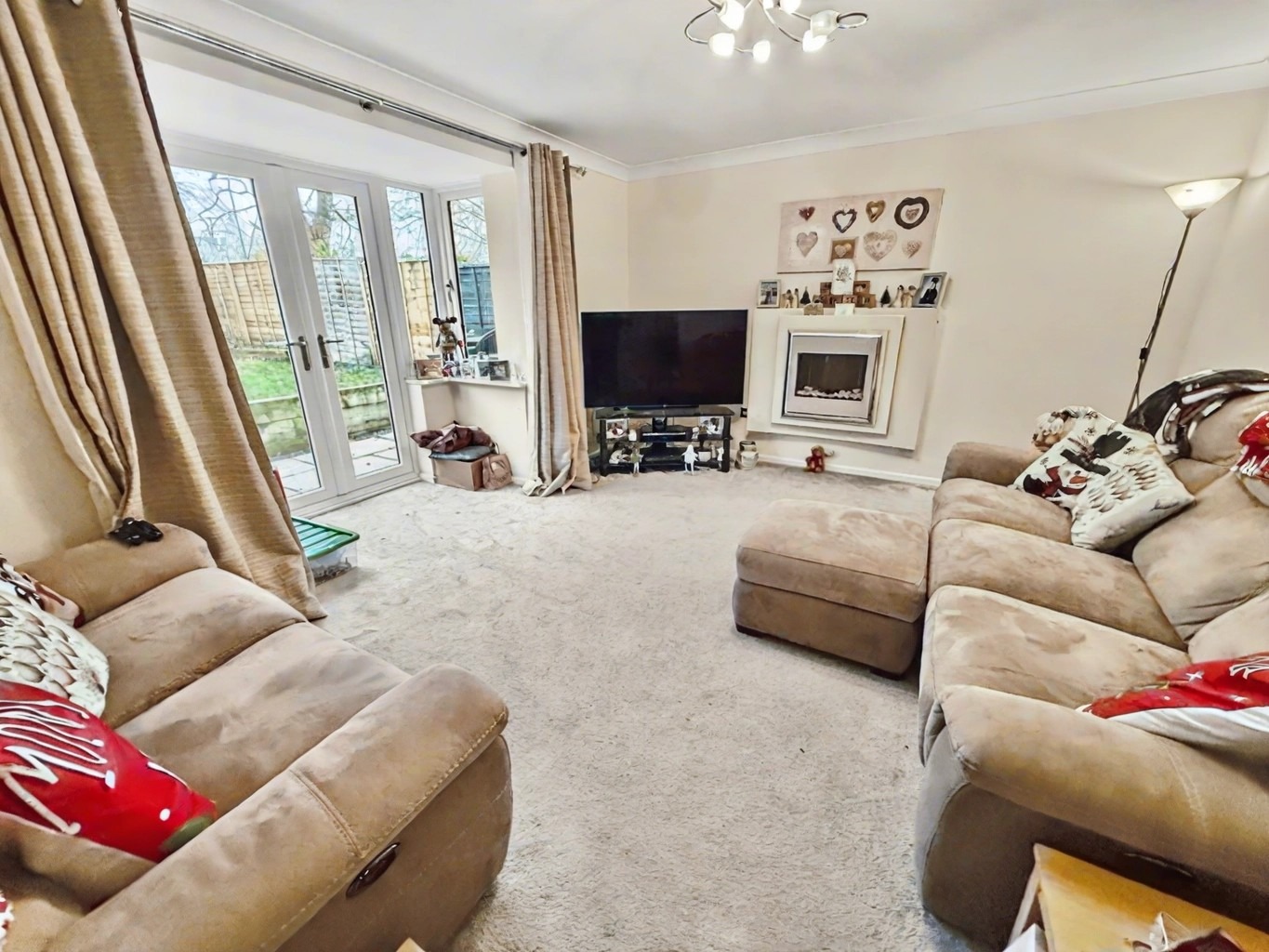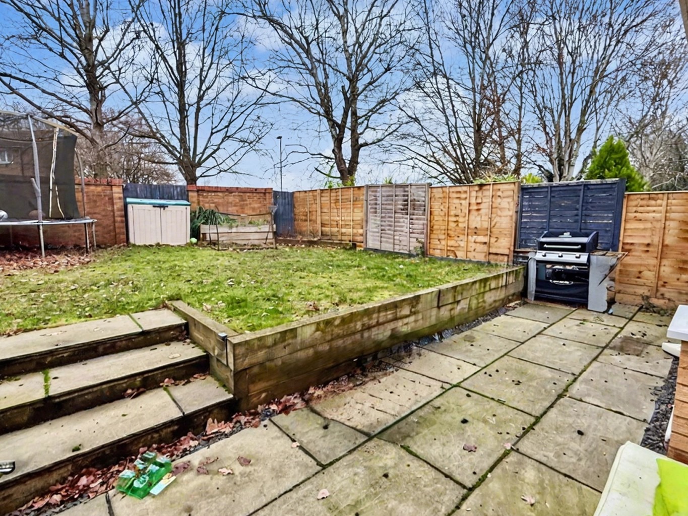 Outside, to the rear, is a good-sized private and sunny garden which is mainly laid to lawn with a large patio area. This is a great space for the kids to play or for the adults to relax with a glass of wine during those summer months. More appropriately for this time of year to gather round a cosy firepit as those colder nights draw in.