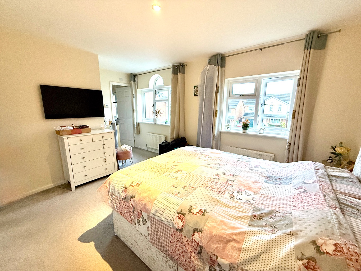 To the front, you have pedestrian access to the converted garage and off-road parking for at least three vehicles.