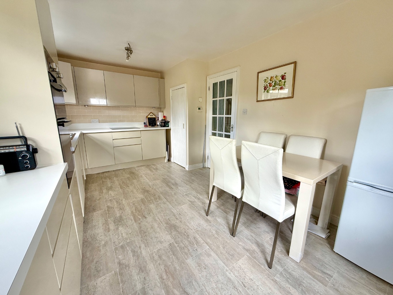 The adjoining kitchen/diner provides a stylish and functional environment, featuring contemporary units, integrated appliances, and ample worktop space, it also boasts views over the enclosed garden to the side of the property.