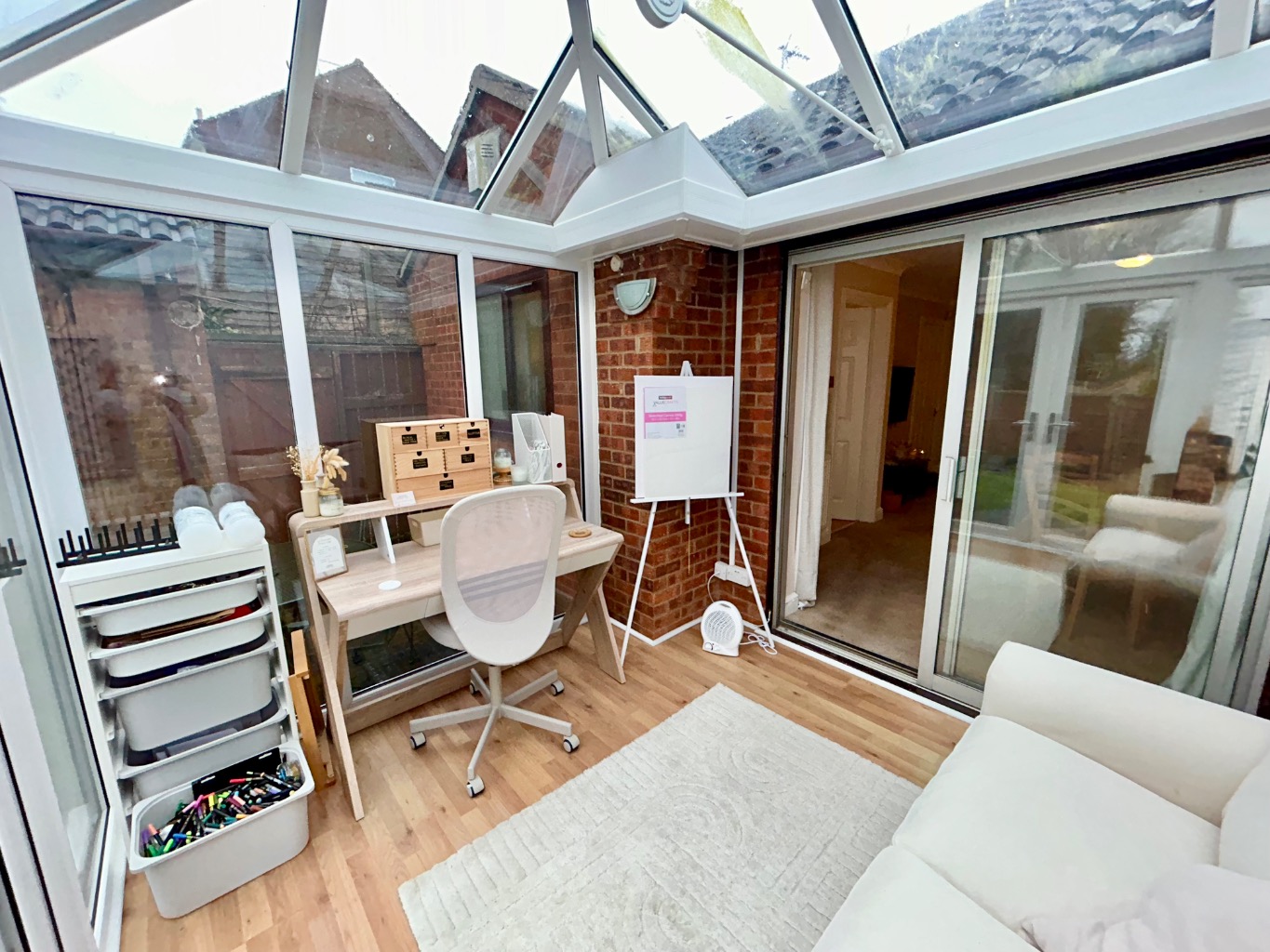 The layout works really nicely. There’s a welcoming hallway with useful storage, leading through to a bright and well-proportioned lounge dining room. This is a lovely everyday living space, with plenty of room for both sofas and a dining table, and it flows naturally into the conservatory at the rear. Added a few years ago, the conservatory is light and airy and looks out over the garden. It’s currently used as a craft room, but it’s easy to see why this has been a favourite spot for enjoying a quiet cup of tea, especially on sunny afternoons.