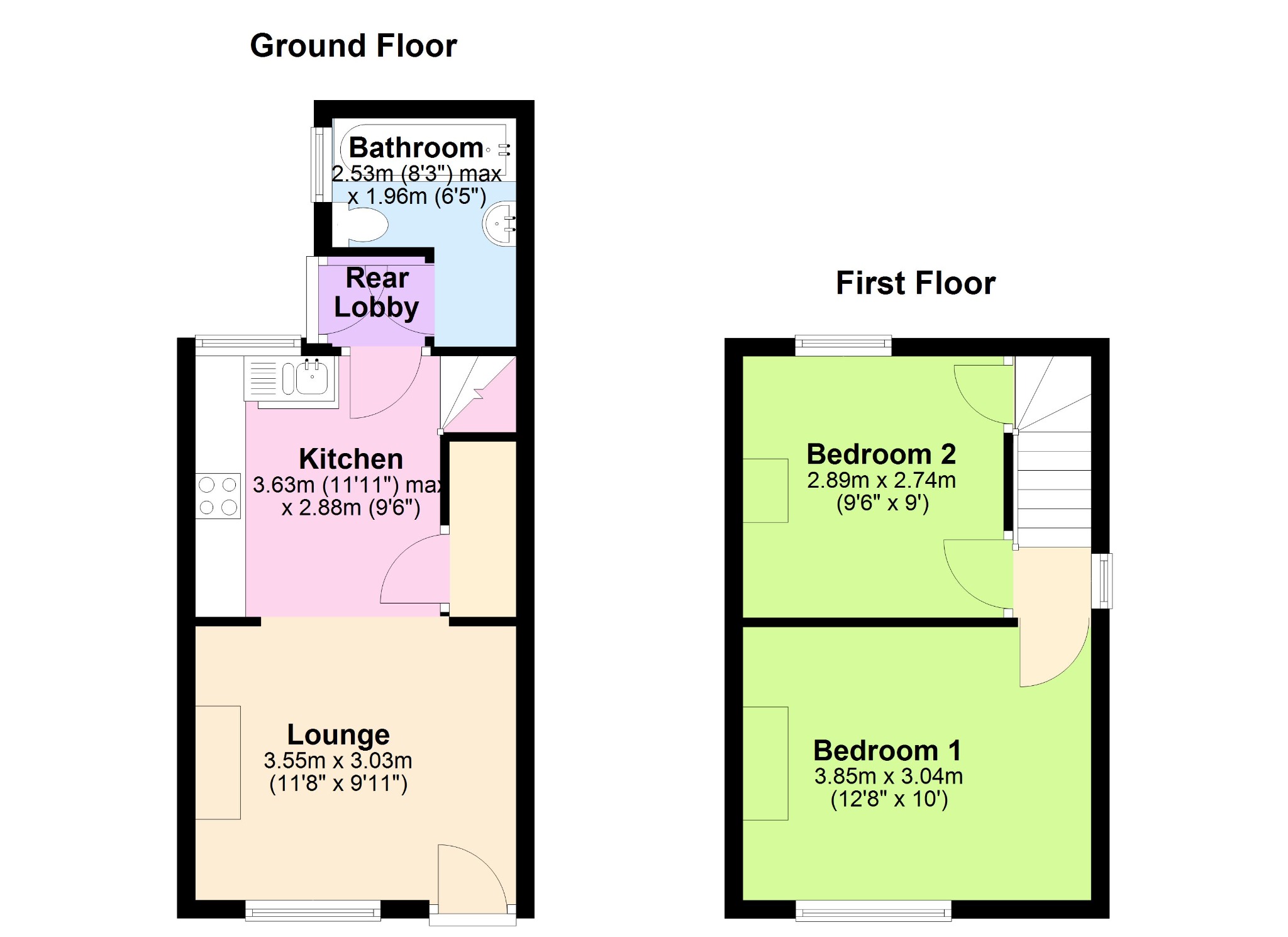 Stairs lead off to the first floor and there’s also as door to the rear lobby where you can access both the back door and the ground floor bathroom.