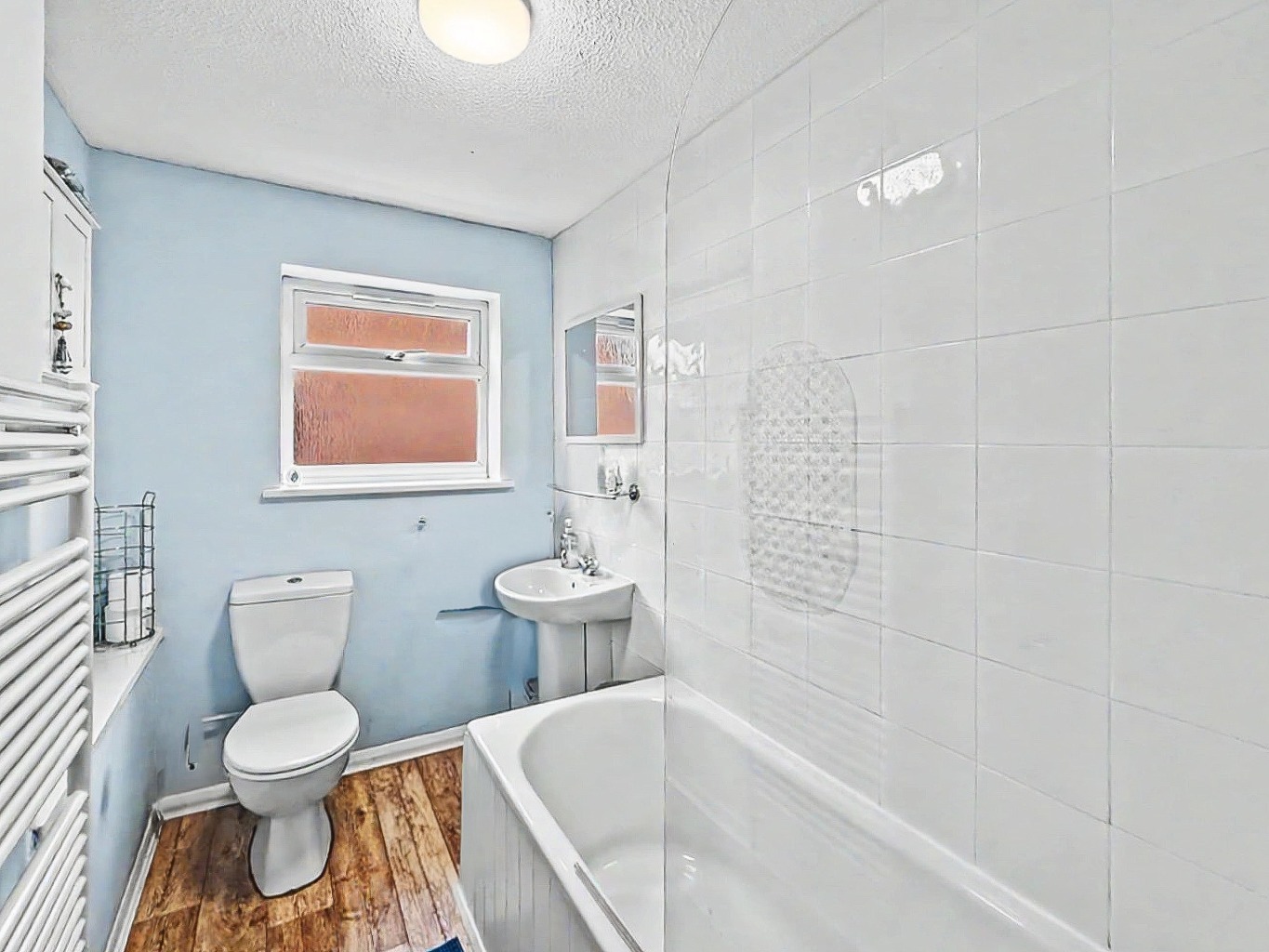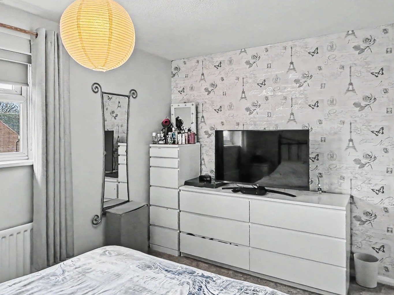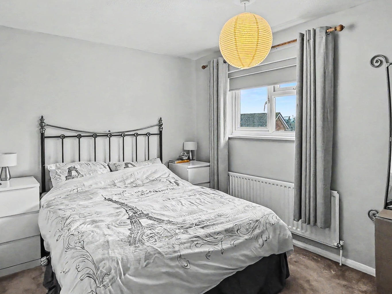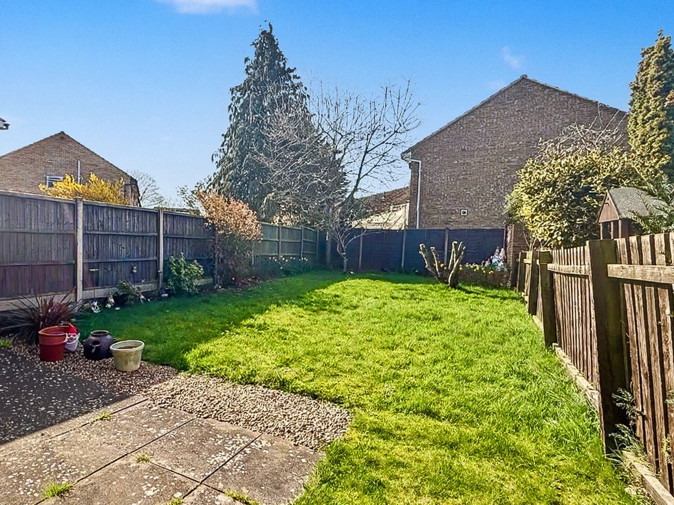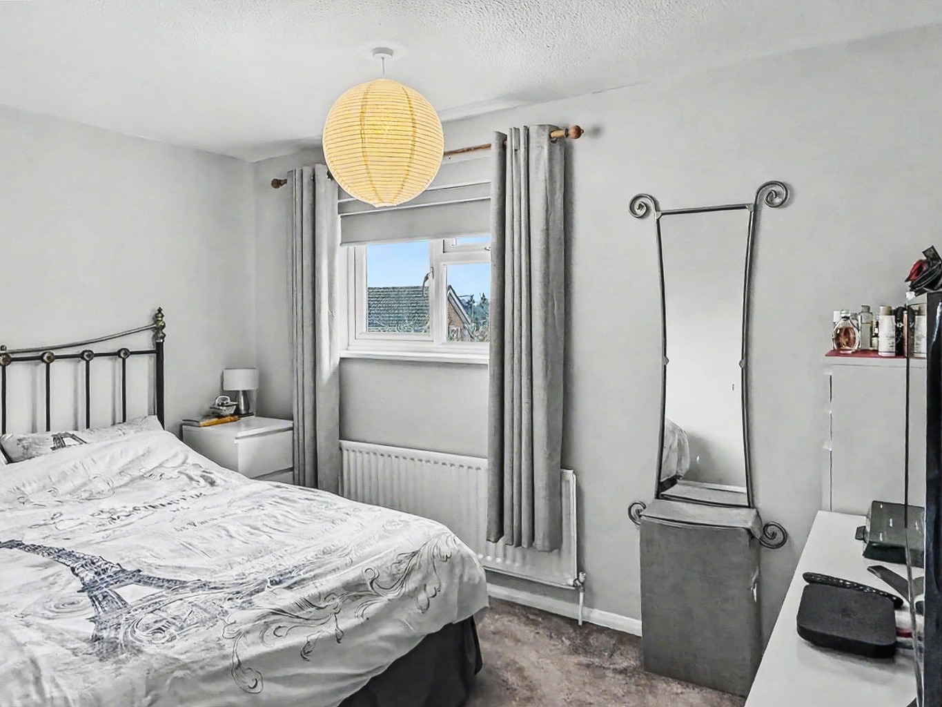 Upstairs, you’ll find four well-proportioned bedrooms and a family bathroom. The main bedroom benefits from fitted wardrobes and a lovely outlook over the garden. There’s also easy loft access via a pull-down ladder, offering excellent additional storage, while the airing cupboard houses a recently replaced gas combination boiler.