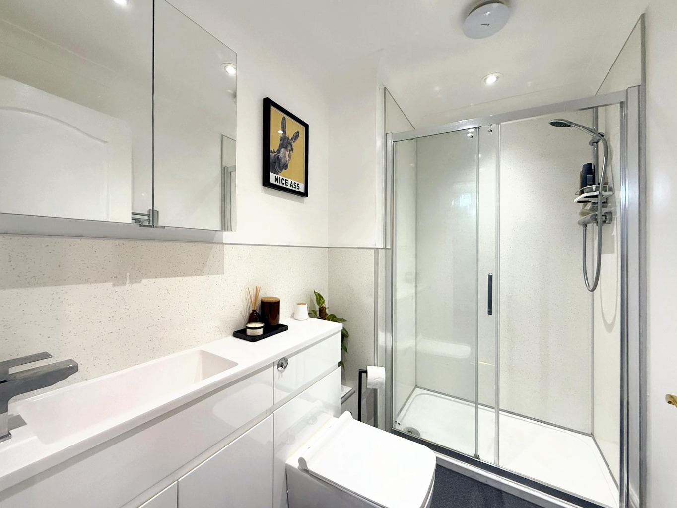 Upstairs, the principal bedroom is a real highlight, with fitted wardrobes and a luxury four-piece en-suite, complete with both a bath and a separate shower.