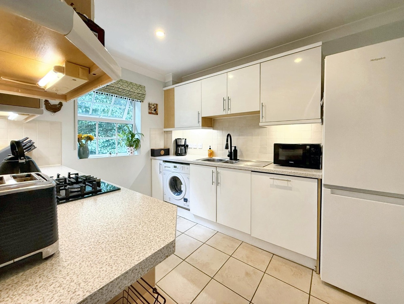 Outside, the sunny rear garden enjoys a lovely outlook over the playing fields and also benefits from a generous side area, giving it a more open feel. At the front, the driveway provides ample parking in addition to the garage.