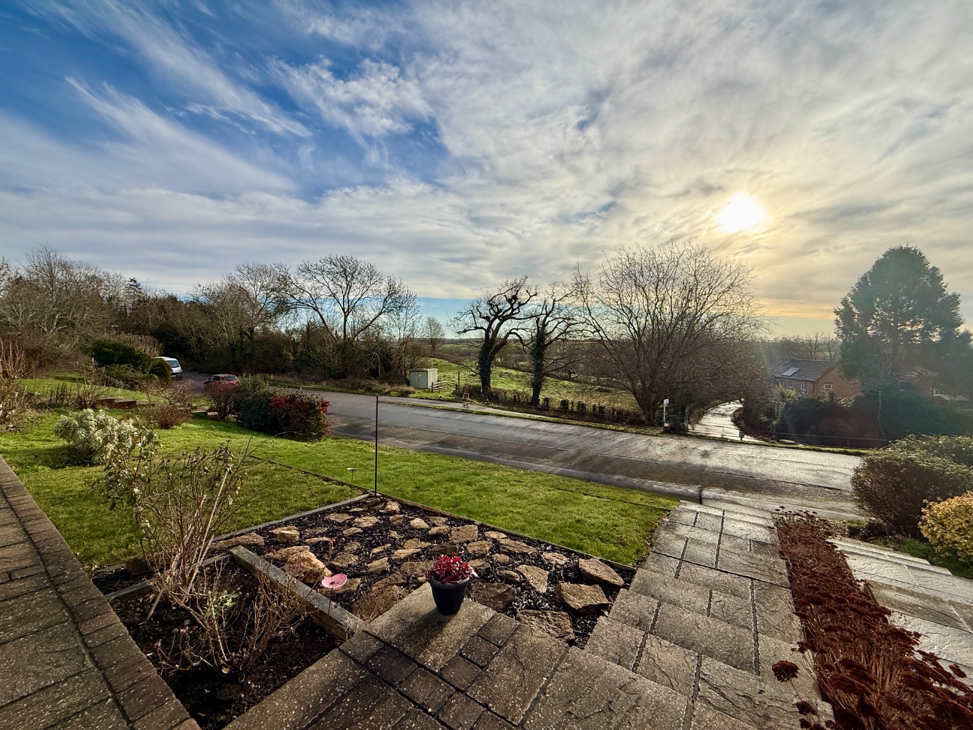 To the rear is found a pleasant and private garden with rural views over fields to the rear, the rear garden gets plenty of sun, the garden is mainly laid to lawn with a paved patio and a number of fruit trees, the patio area is a great area to sit and chill in the peace and quiet whilst enjoying a glass or two of wine on those warm summer evenings.