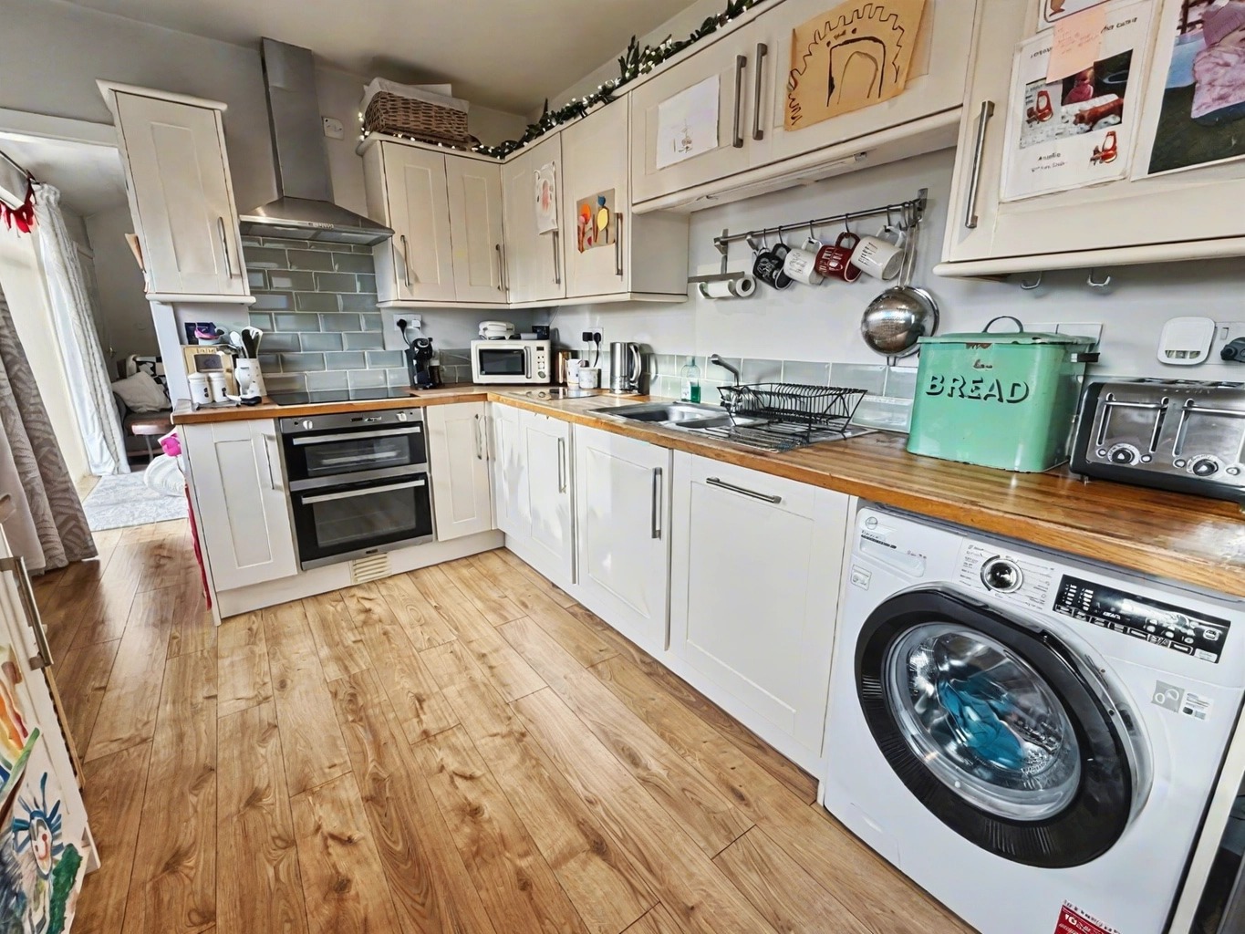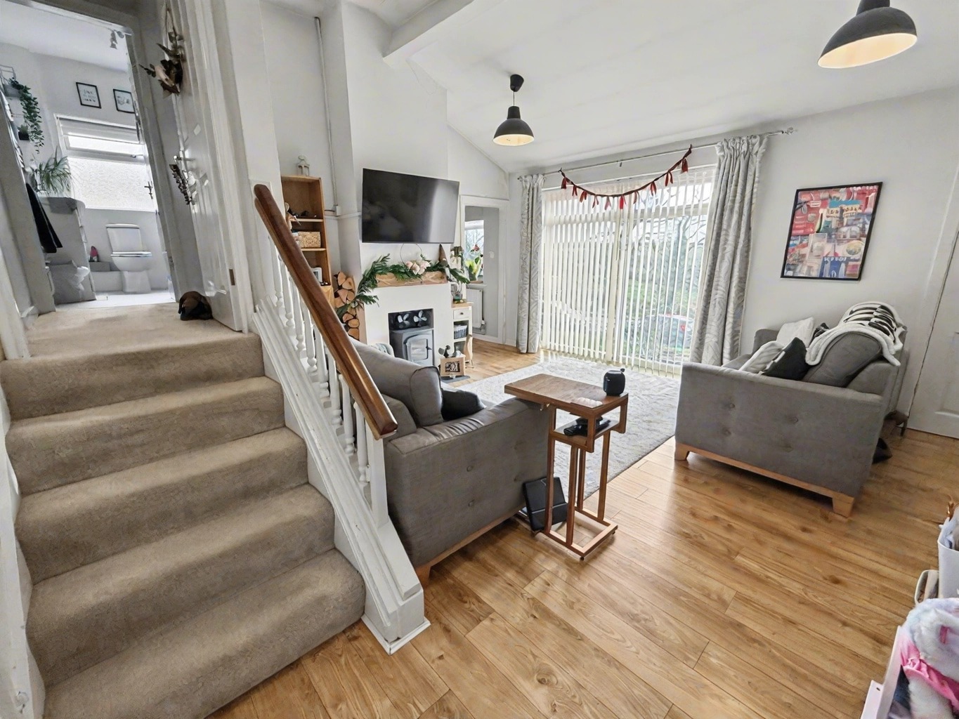 The lounge is surprisingly spacious and bright, this room is very cosy and has a feature electric fireplace. To the rear of the property the fitted kitchen offers plenty of wall mounted cupboards, ample space for white goods and there is even space for a small breakfast tab. Just off the kitchen there is also a very useful utility area