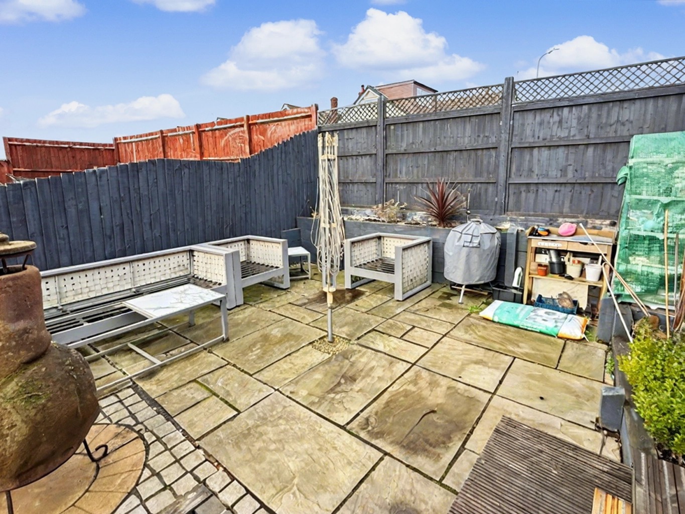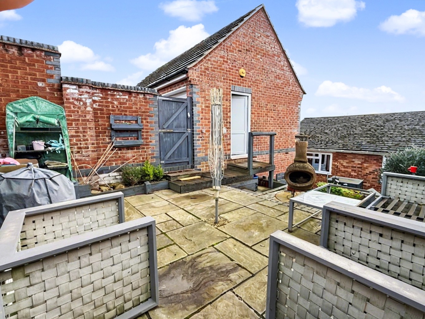 The garden also has a a greenhouse and raised vegetable beds all enclosed by wooden panel fencing which offers a good degree of additional privacy.