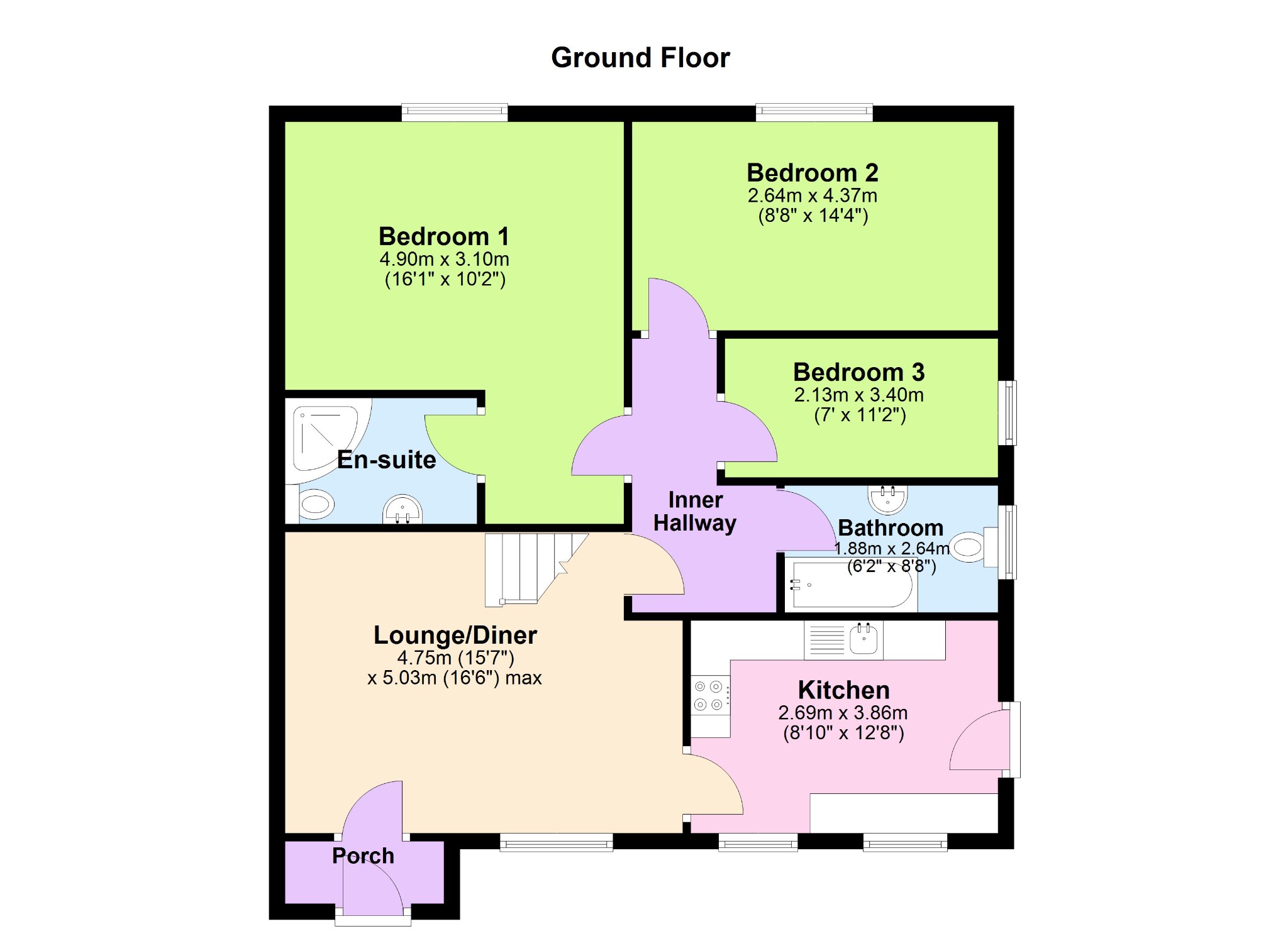 3.63m (11’11”) x 2.98m (9’9″) max